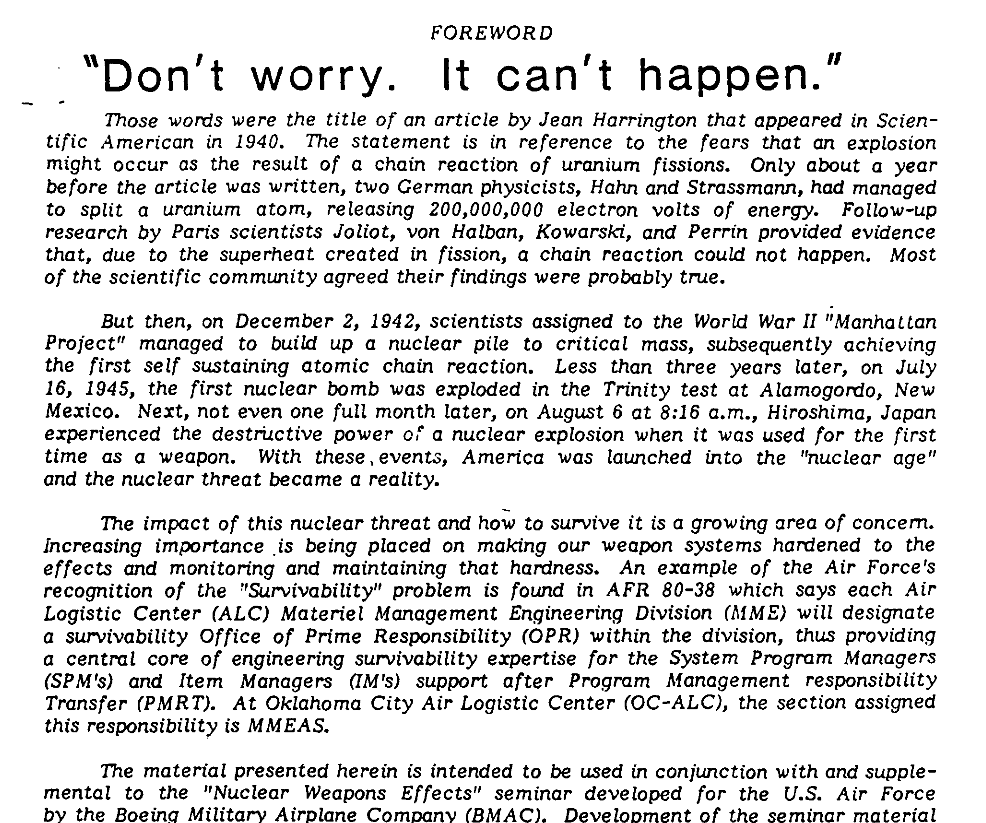 Yes, the paper was real: Harrington, J. (1940). Don’t Worry—it Can’t Happen. Scientific American, 162(5), 268-268.